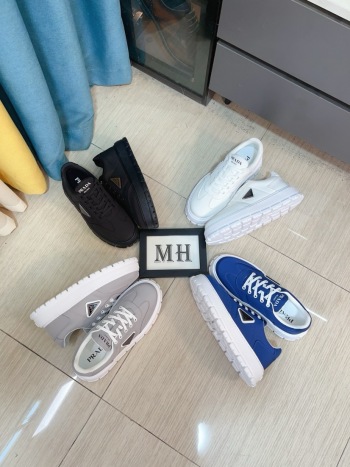 Top version Original list PRADA new casual sneakers Original purchase and development Made products Prada Men's classic series Technology breathable fabric with cowhide Casual sports shoes Casual sports dad shoes combined with high-tech breathable material and cowhide, with exclusive button decoration on the side P home The italic design and bright colors show vitality, continuing the brand design inspiration. Walking through the city lightly, feeling unrestrained and comfortable. Delivery counter exquisite packaging. Original customized lychee pattern calfskin inner lining cowhide inner lining cowhide footbed. The open-sole molding is used to take PU TPU material. The bottom thickness is 3.5CM Size. Men's 39-44 (38 45 can be customized) 2 colors are available, prada, prada, sneakers, cowhide