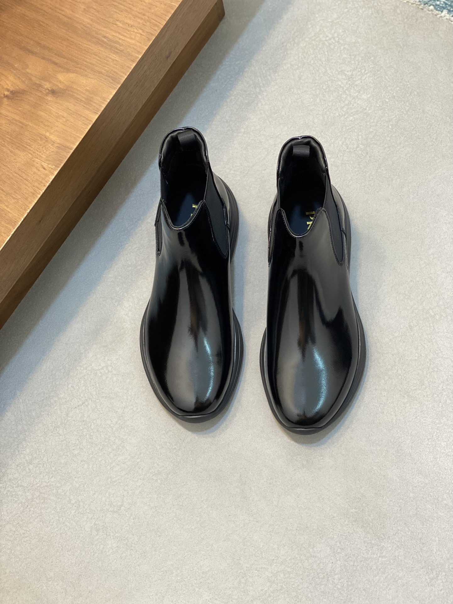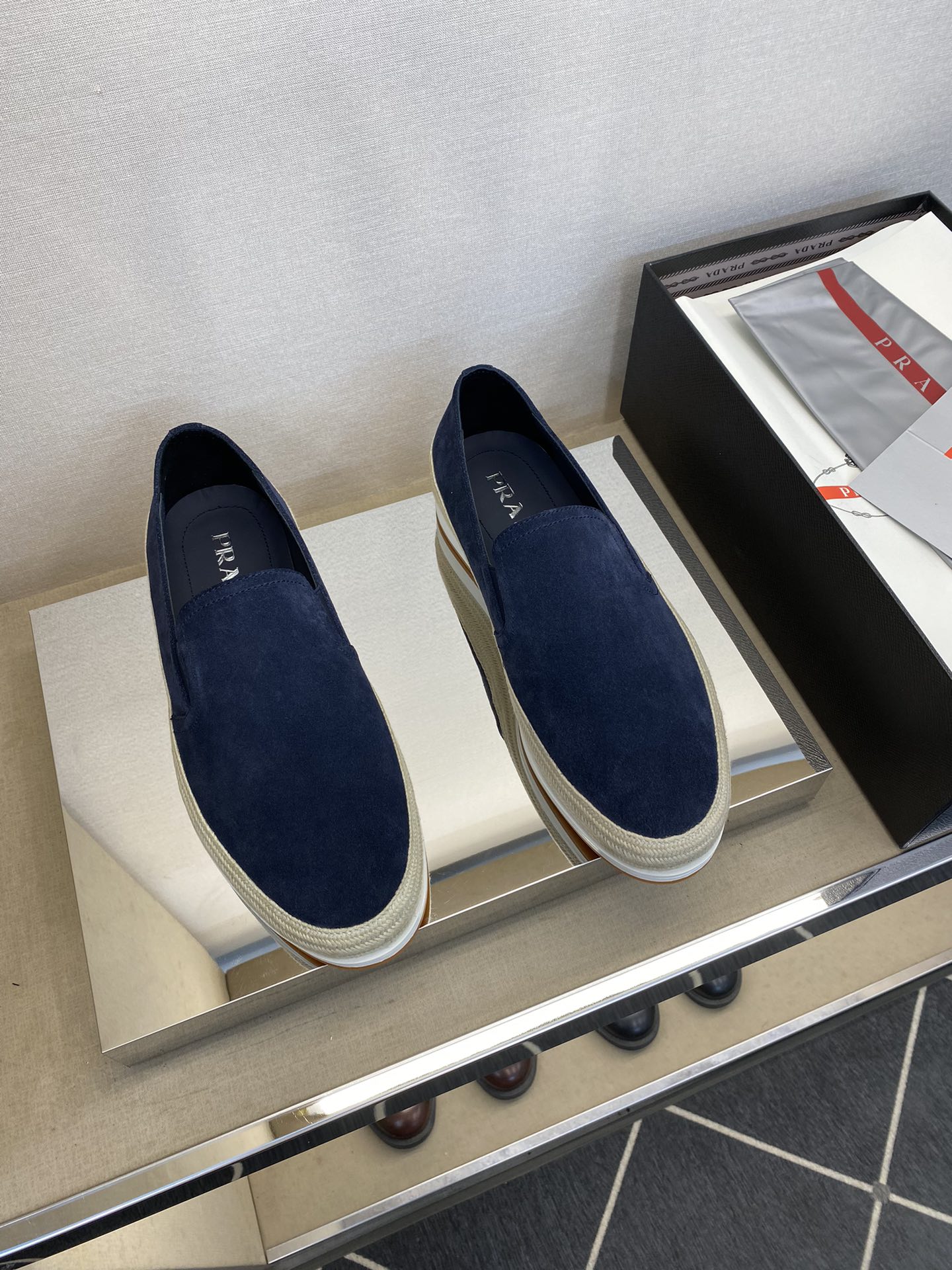 Prada/Prada's new glossy leather loafers, using an Italian imported bead upper, a foot-covered loafer style, large piece splicing design, durable and undeformable, heavy-worked, exquisite mark stitching, same material decorative, classic and modern style, inner lining is dyed calf leather, standard with PRADA logo cowhide foot pads, original ultra-light matte texture and concave and recessed sole, lightweight and not tired of feet, excellent shock absorption effect, full comfort of the foot! Size38-45, prada, prada, loafers, cowhide