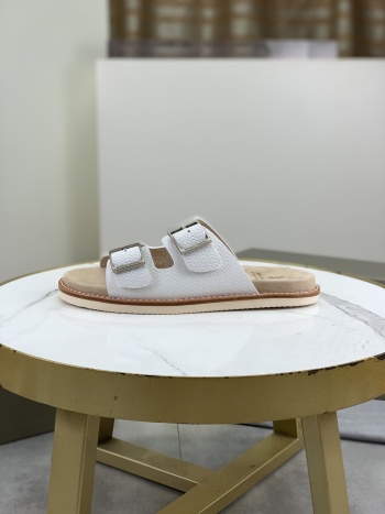 New Brunello Cucinelli BC men's casual men's sandals! The uppers of this sandals are made of high mercerized water-washed fur imported from Italy. The inner and insole leather are also of the same grade. The outer waist of the upper is inlaid with brand electroplating and old craft buckles. The buckles can also be retracted at will, and you can control the weight loss foot! The middle-level footbed is the original 1:1 replica private model, full of three-dimensional and skin-friendly feeling! The bottom bottom is a high-density and elastic rubber foam cut material, which is wear-resistant and not easy to deform! The surface of the bottom is covered with a 4mm thick leather edge strip, and the cost of this edge strip is dozens of meters! This sandals are classic and never out of date! The unique logo on the outsole and the unique water ripples groove design make the luxury instantly burst! I don’t have to change my shoes this summer! The shoe box uses an original drawer shoe box and is equipped with a shoe storage bag! Size 38~46 (customized by 38, 46), brunello cucinelli,slippers